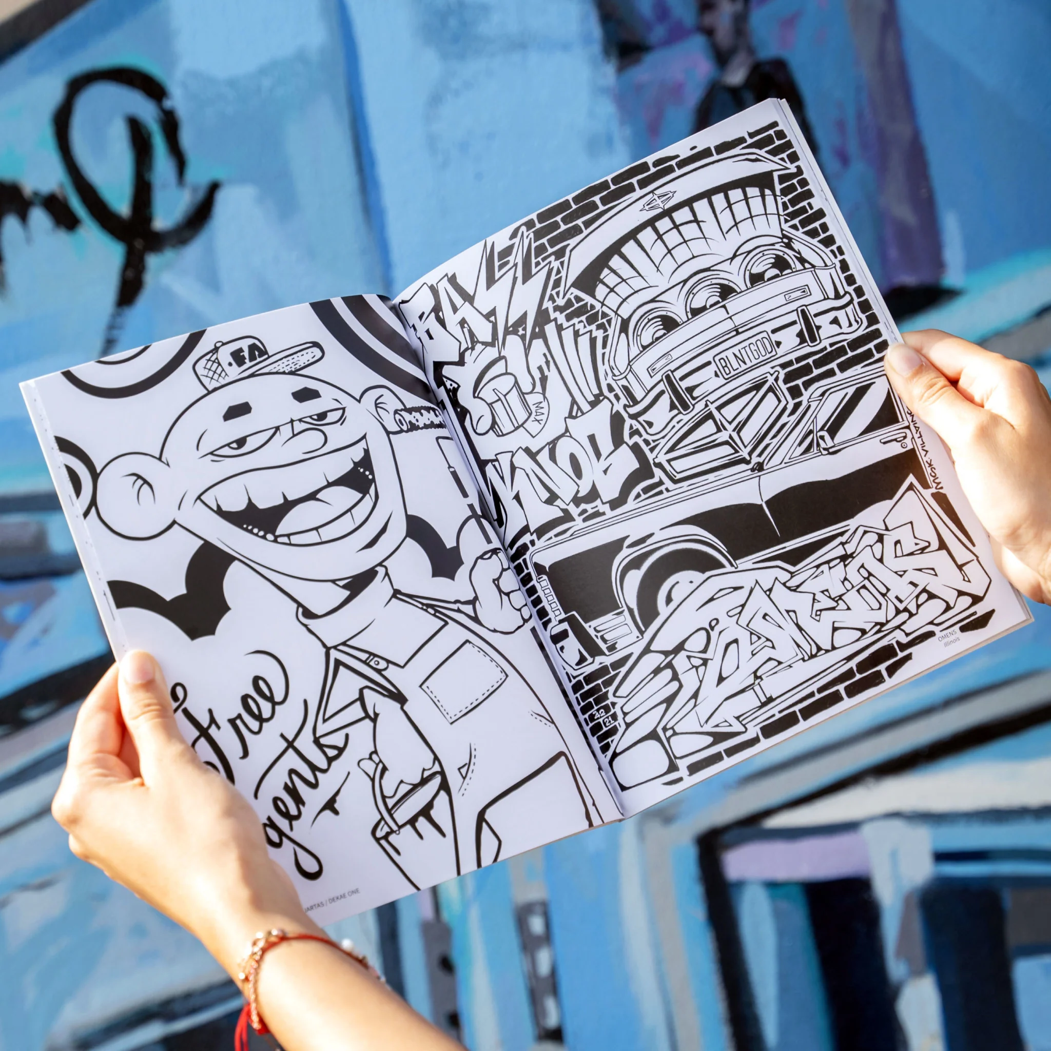 From New York pioneers who helped create the art form in the 70s, to freight train kings in Florida and hall of fame spray can wizards in California- they all come together to let us study their styles and color-in their outlines.