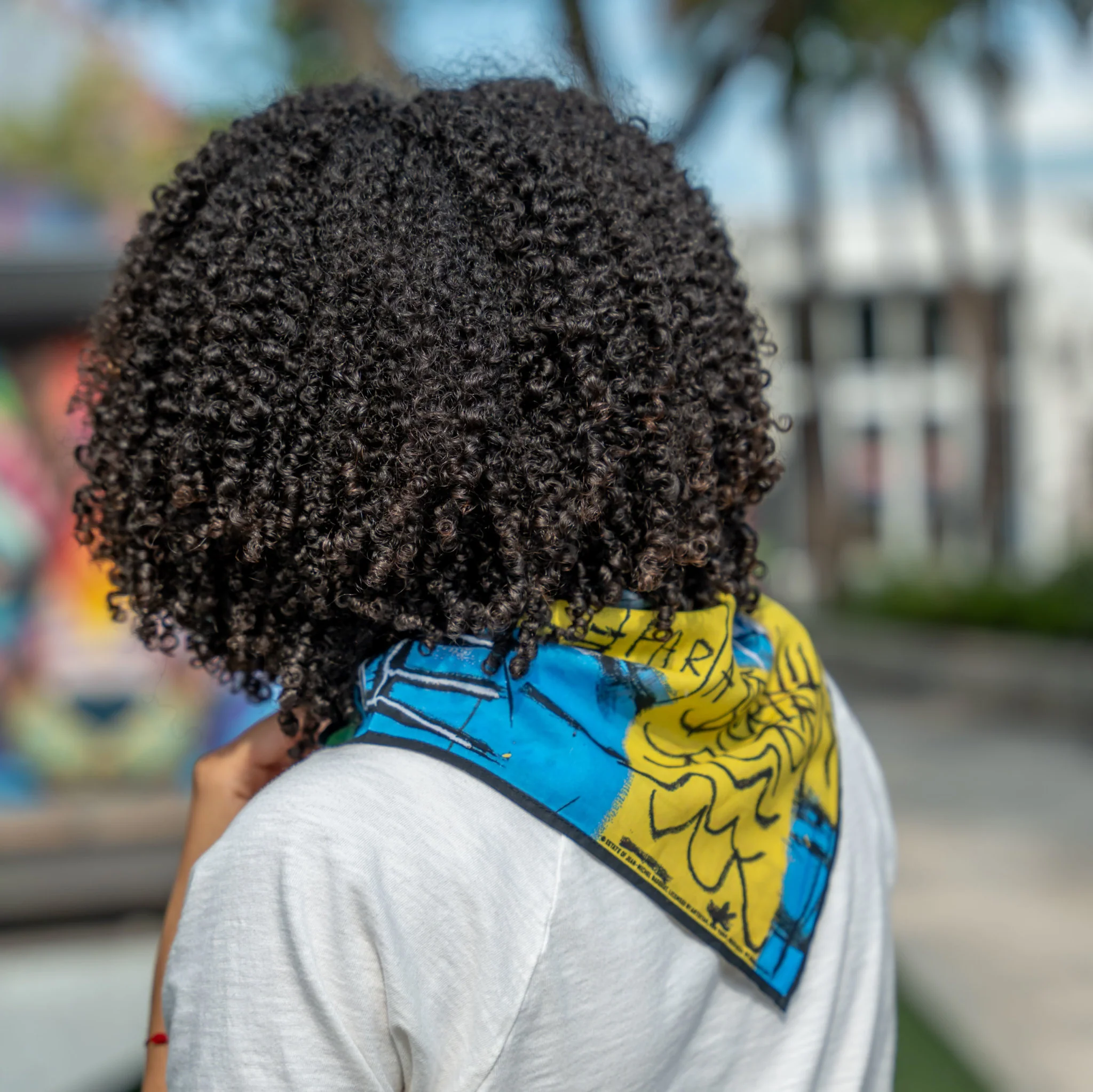 This one-of-a-kind bandana has art by the late, great Jean-Michel Basquiat and instantly becomes a conversation starter. This piece of wearable art will appeal to both art connoisseurs and trend-setters. The perfect accessory for any casual outfit, it will give you an artsy vibe with a modern twist. Crafted from high-quality cotton fabric and finished with intricate detailing, this is a must-have item for all fashionistas. Make a statement and show off your unique style today!