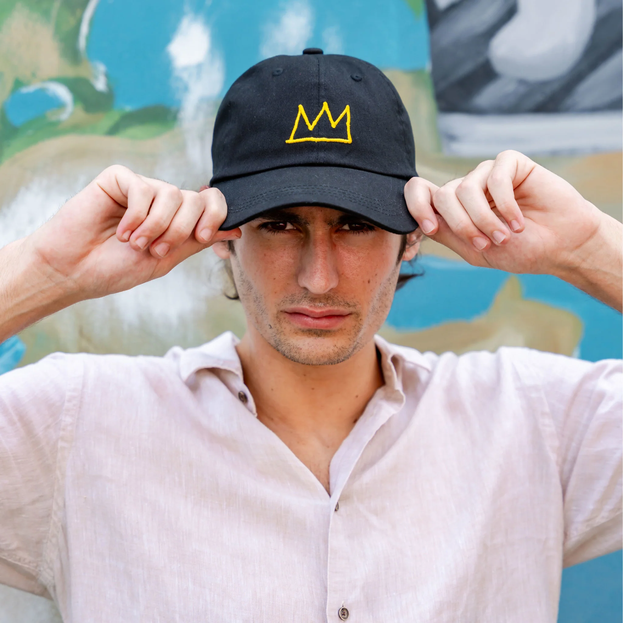 The crown motif originated in Basquiat's Red Kings (1981) work, and since then, it has become a symbol synonymous with his oeuvre. Through the crown, the artist offers recognition and tribute to his influences and heroes while depicting Black men as saints and kings. By wearing this cap, not only will you be paying homage to the great Basquiat, but you will also be wearing a piece of art history on your head.