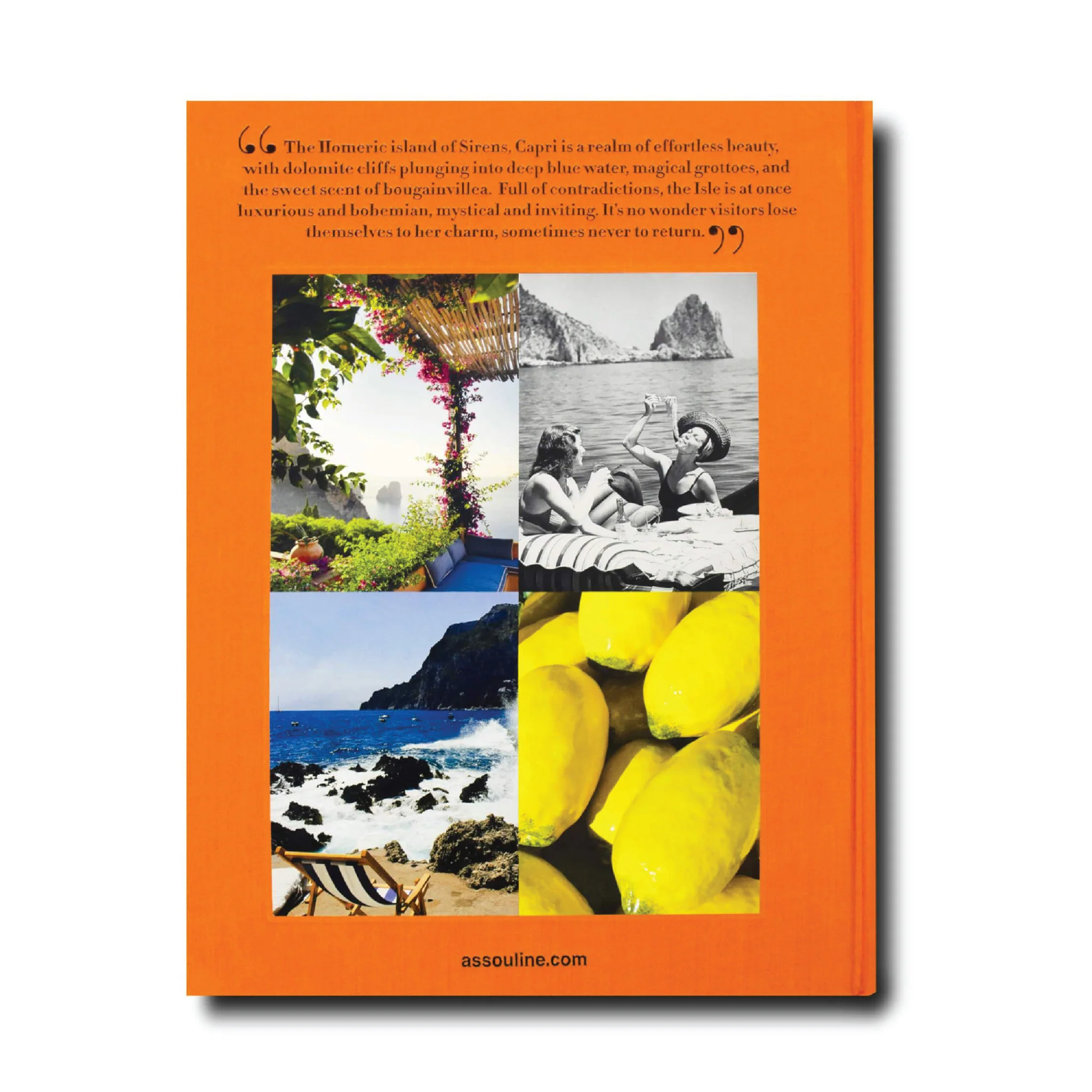 Capri, a resort island dating back to the height of the Roman Empire, has long been an extraordinary destination full of ancient charm. Cherished by everyone from physician Axel Munthe, who recommended its clean air to his patients as a cure for bronchitis; to film director Jean-Luc Godard as the setting for his 1963 film Contempt; to literary icons, celebrities, poets, and the jet set, Capri boasts a rich Mediterranean spirit and style that encompasses a wealth of beauty, from gardens to villas to caves to the people walking in the lively Piazzetta, where cars are prohibited and the islandās playful attitude runs rampant. Capri Dolce Vita is a look at this fabled corner of the world through the ages and a celebration of paradise on earth.