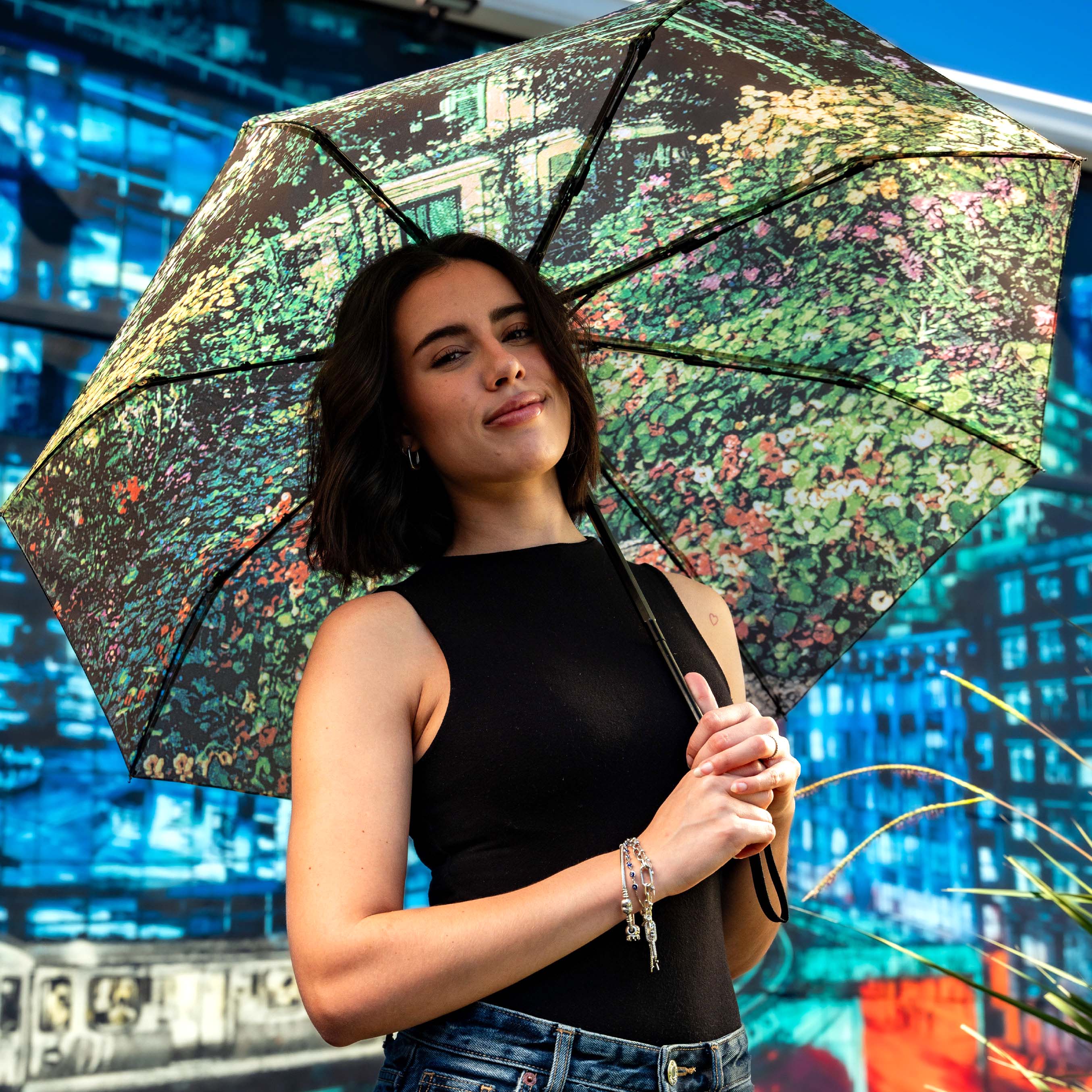 A: Definitely this artistic umbrella is perfect for art lovers and fans of Logan Hicks or Wynwood Walls.